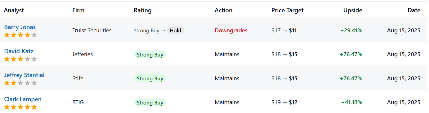Les analystes ont tous ajusté leur prix cible à la baisse, la moyenne se situant désormais à 13,25 $.
