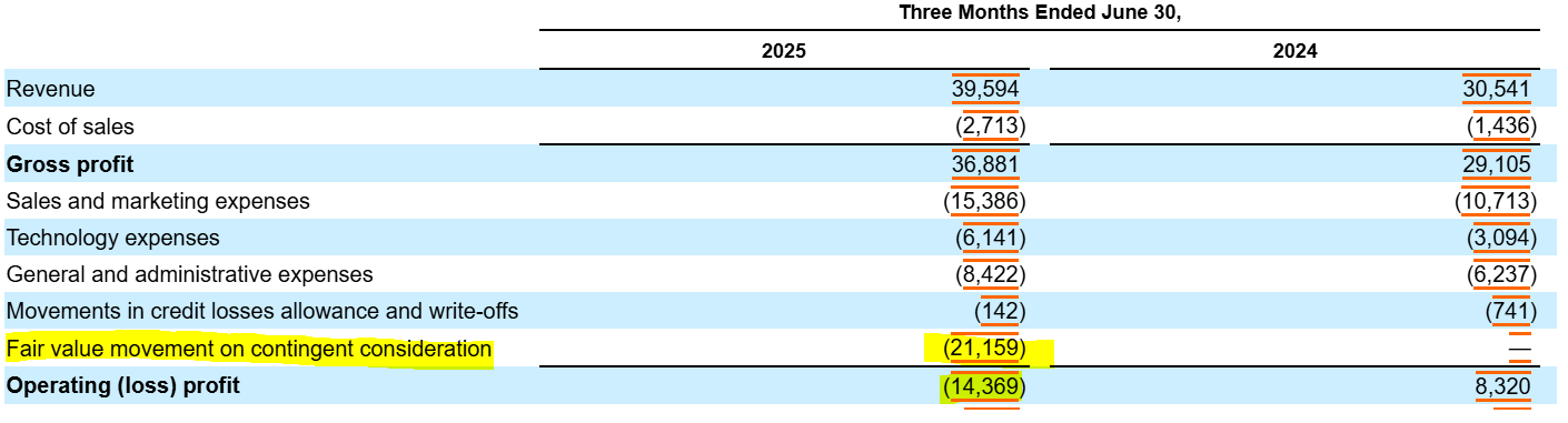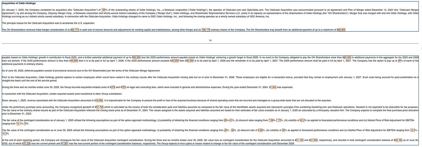 Il s'agit tout simplement des paiements additionnels liés à l'acquisition d'Odds, dont le montant dépend des performances financières de la société acquise. Plus ses résultats s'améliorent, plus la somme à payer augmente.
