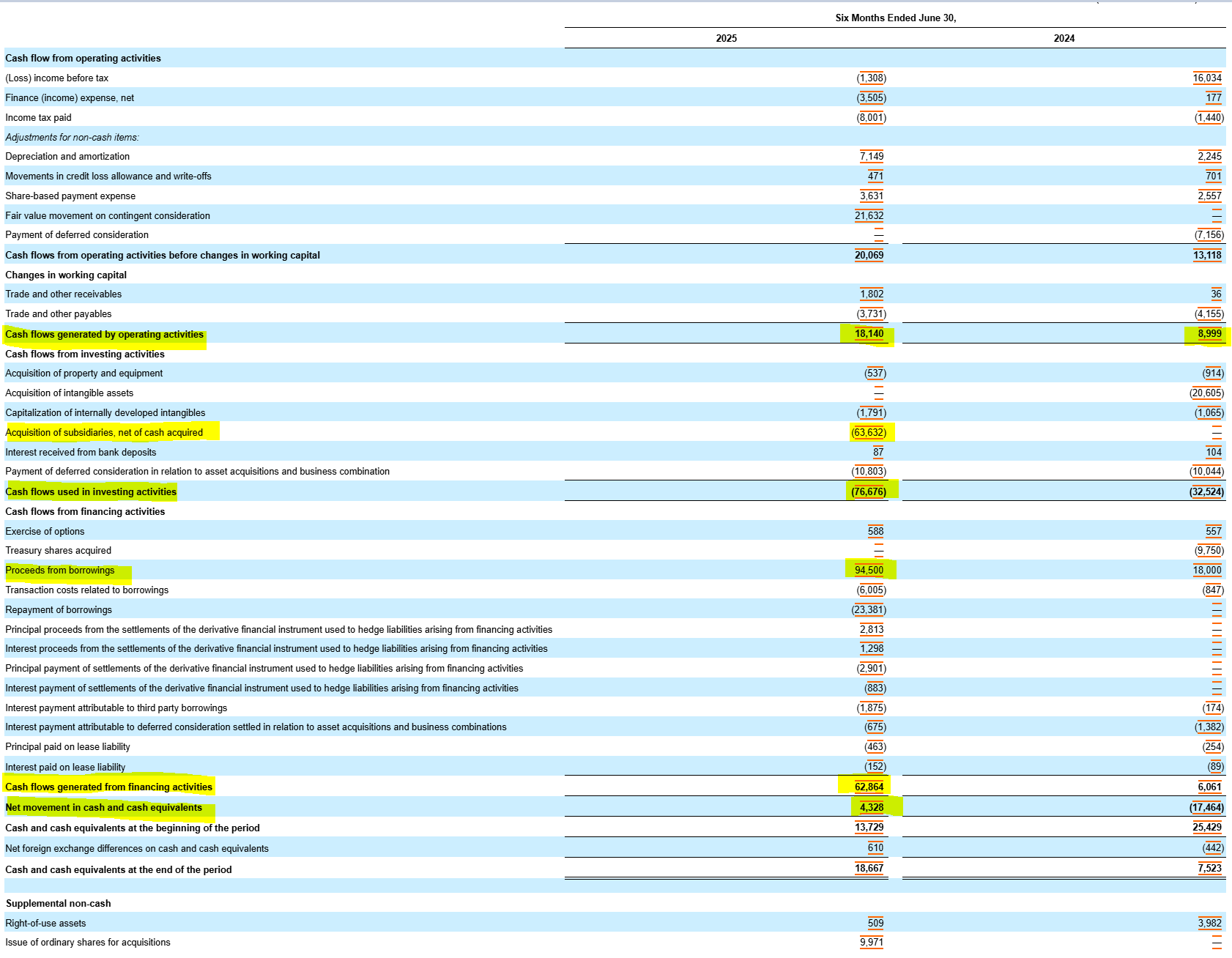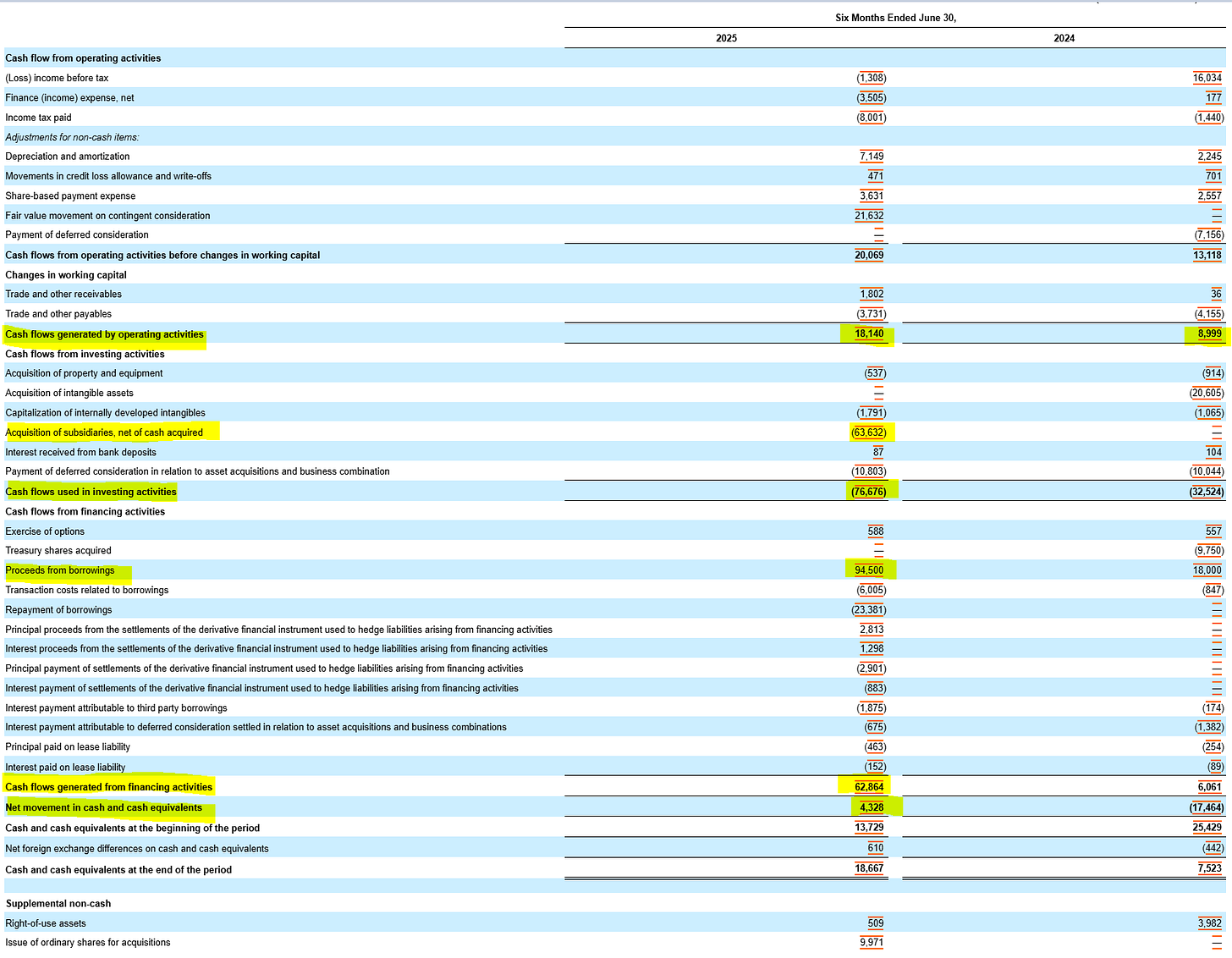 En ce qui concerne les acquisitions, le rachat d'Odds s'est élevé à 63 millions de dollars, financé à la fois par du cash et des actions. On note également un renforcement de l'endettement du groupe, avec l'utilisation de 94,5 millions de dollars en emprunts.